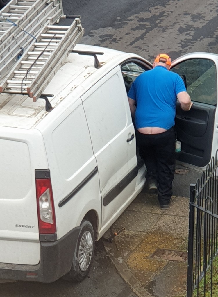 A different window cleaner turned up a few days later and all he did was top up his water tank from a standpipe in the pavement. The following picture is not safe for work, for children, nor for people of a nervous disposition.