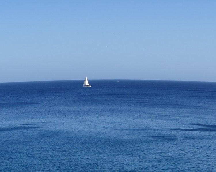 I took 22,608 steps altogether and they were all most enjoyable. Well, all except one, at about 17,000 steps. We were ambling along on the flat rocky beach, soaking up some rays, when my left foot decided to go the wrong way. It twisted, I did a little dance, and sat down for a moment to recuperate. Three people up on the promenade help up a big red ❌ which I think means they were impressed by my spontaneous display of choreography.