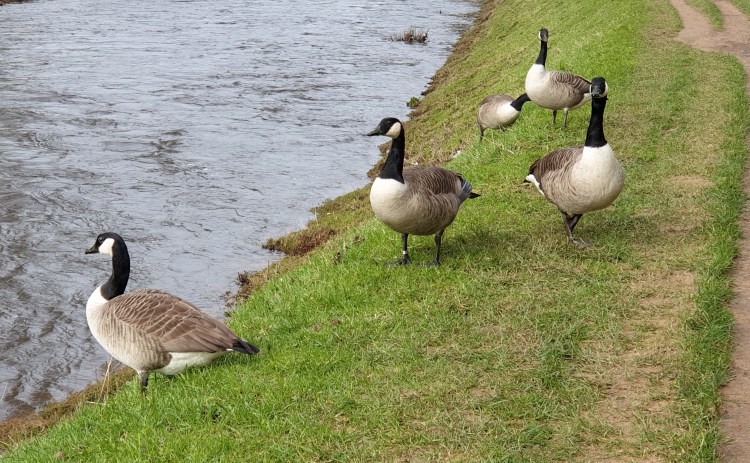 We admired the colourful graffitti under the motorway. Admired? Bemoaned. The geese by the Mersey didn’t bother us so we didn’t bother them either.