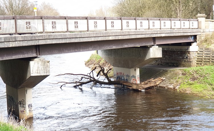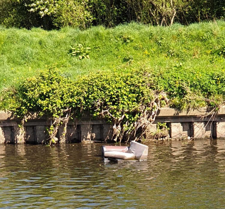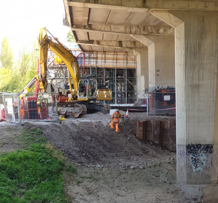 This is where the M60 crosses the Mersey and its supports are being reinforced, a long-term project. The path on that side of the river is closed to pedestrians while the work is undertaken, showing how determined someone was on the day they decided to throw their old furniture into the river.