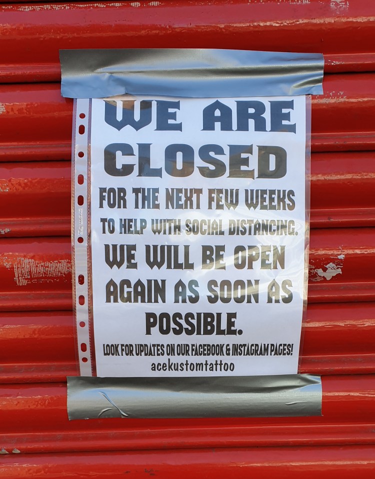 We’re still in lockdown, self-isolating, embedded in the frontline at home, finding new and interesting ways to keep ourselves occupied and entertained. The weather certainly lifts the mood, now it’s warmer and sunnier, but we’re not allowed out more than once a day for a quick spot of exercise. It’s disconcerting when you see so many shops closed for business, with the shutters down. Some have displayed notices, but not all. Any plans we had to acquire tattoos for instance have been put on hold for the time being. Oh well.