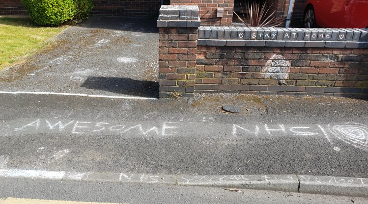 We’re not getting out very often, in fact. I go out every two or three days for a walk and Liesel comes out less often. It’s nice to see so much support for the NHS. We clap for the nurses and doctors and porters and cleaners and all NHS workers every Thursday night, some people bang pots and pans, some let fireworks off, some blow vuvuzelas, but Liesel and I are just happy to lean out of a window and politely applaud. There is more support and gratitude expressed out on the pavements of Northenden too.