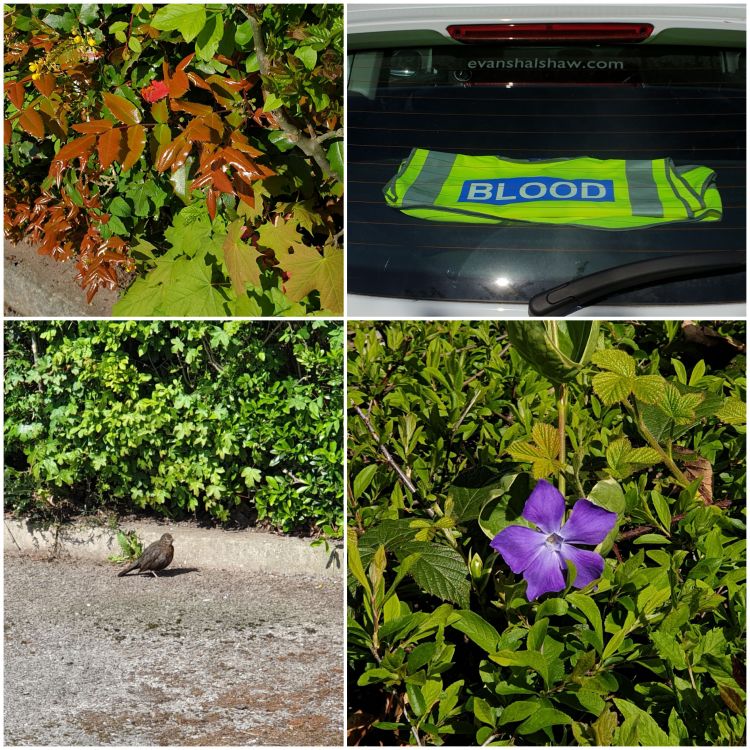 Blood day arrived, and we drove along almost empty roads to the Blood Donor Centre in Manchester. The man in the booth raised the barrier and we parked in a surprisingly crowded car park. Liesel went first, answered a few questions, and when she went in, I was requested to go and wait in the car: they didn’t want too many people inside at the same time. Well, of course, Liesel had the car key, so I couldn’t sit in the car. Instead, I took some exercise, walking round and round the car park, taking photos, enjoying the sunshine and changing direction whenever I saw another person within about 50 feet.