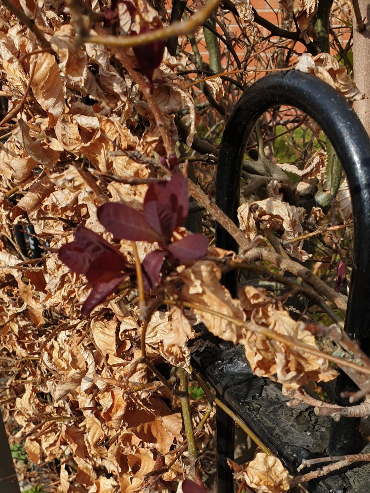 The hedge around our apartment block is still covered in brown leaves that we feel should have fallen off last Autumn. But, for the first time, this week, there are signs of life. The new leaves are red rather than green, but a few days sunshine should sort that out. Looking forward to a lush, green barrier very soon.