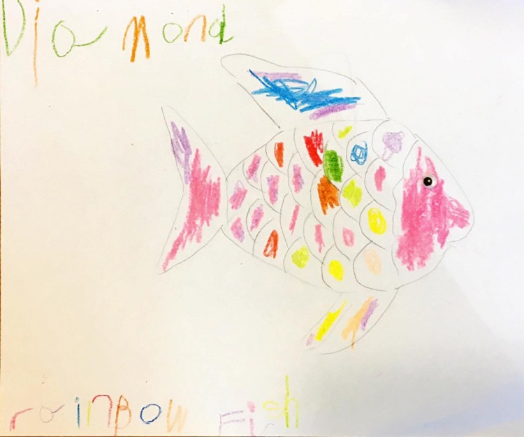 Martha coloured in this rainbow fish for her nursery class.