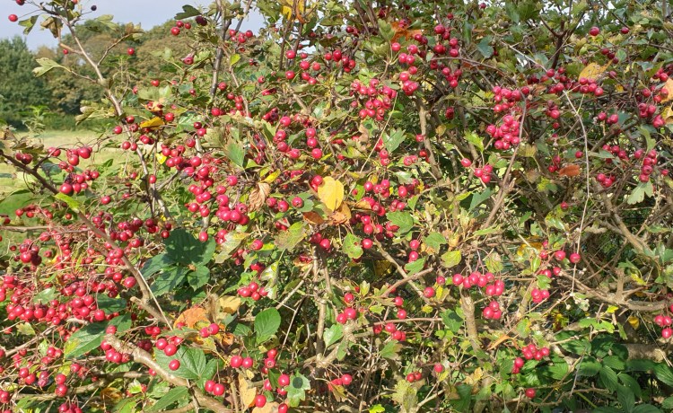 I do like a splash of colour and while the Autumn leaves are gorgeous, a blast of red from rosehips cheers up the place (and me).