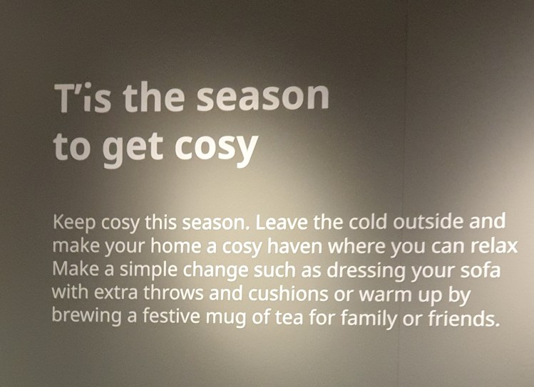 Everyone was full of Christmas cheer, and including the lack of a John Lewis in Manchester city centre, the day was a bit of a failure, really. I also failed to track down the particular species of shampoo I was looking for. And the gig I was going to in the evening? Couldn’t now find the details online. I suspect the Dutch Google gave me double Dutch duff information. But it was good to be out and about in the fresh air. It’s so easy to stay indoors when the weather is this uninviting.
