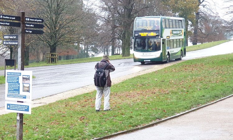 Outside the National Trust Café, patches of frost survived but the Sun erased those as it moved alowly round the heavens. Plans to do some typing on a table outside were thwarted because they and the benches were still wet from the dew. Inside, I shared a table with a couple of strangers and a cup of coffee. My typing drove them away after a very patient half hour.