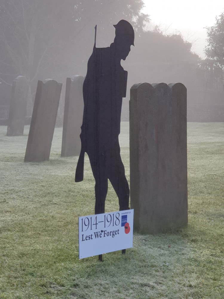 St Michael and All the Angels’ Church stood out in the misty sunshine with a soldier from The Great War silhouetted perfectly and movingly.