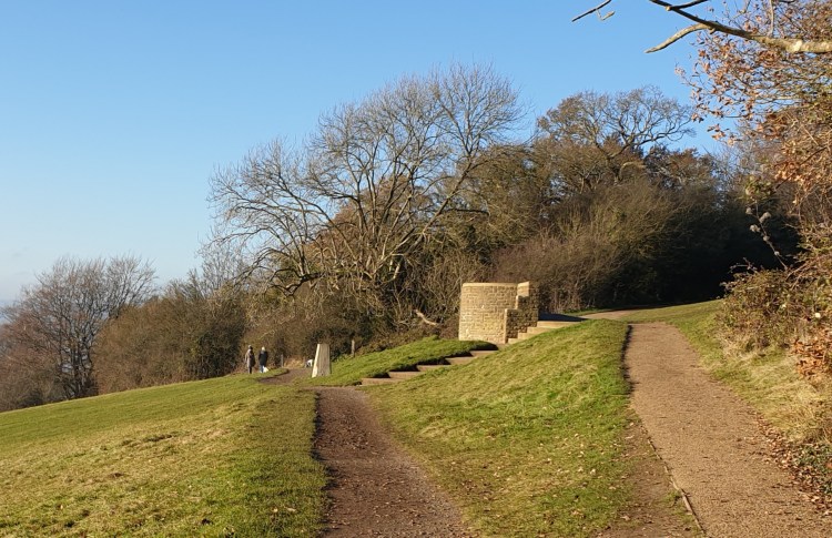 The bridleway was a bit muddy in places, but the leaf cover provided protection. The plan was to meet Liesel at the National Trust Café at midday. The path I was following crossed the road and I had to choose between the Happy Valley Walk, Box Hill Hike and the Natural Play Trail. I knew the Café was roughly over there but when I found the road again, I realised I’d overshot by quite a distance. That was OK, I was able to backtrack, avoiding the loggers, and I found Salomons’ Memorial.