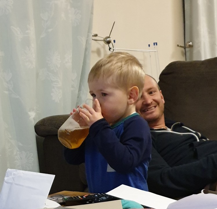 William drinking Daddy’s beer