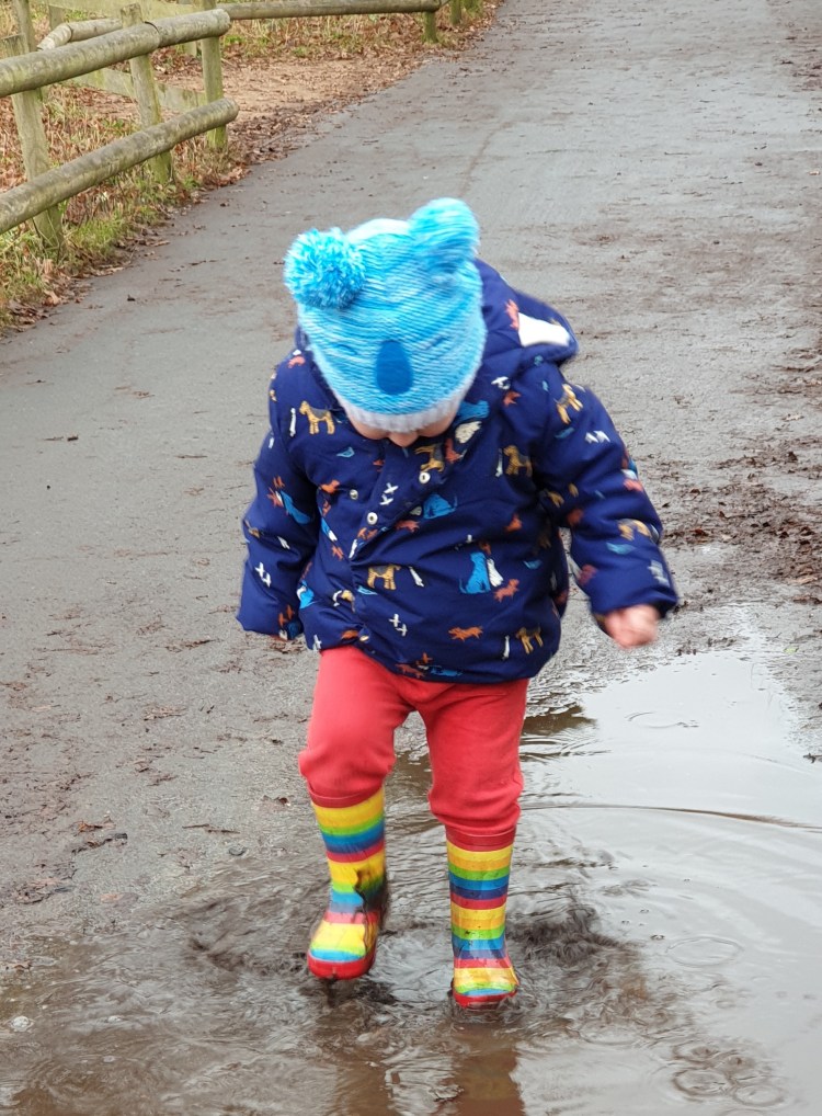 Grandchildren’s day delightfully rolls around once a week. It was time for a return visit to Chester Zoo. William had a lot of fun, and, to be fair, so did we. There were many school parties here today, so it was an educational visit. We learned, for example, that donkeys are baby giraffes. We managed not to get stomped by the herds of school children but some puddles did get stomped by William.