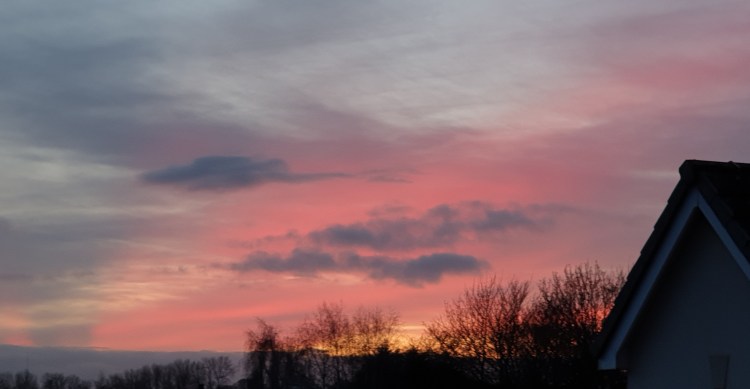 Earlier today, I went for a walk to post the last of our Christmas cards. I say “last” but it was all of them, late. I had fun setting up our new Freeview box, PVR, DTR, thing, whatever it’s called. Just in time for all the wonderful Christmas TV programmes. The day ended with a very pretty sunset.