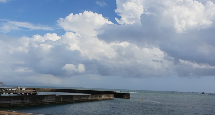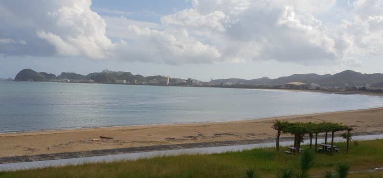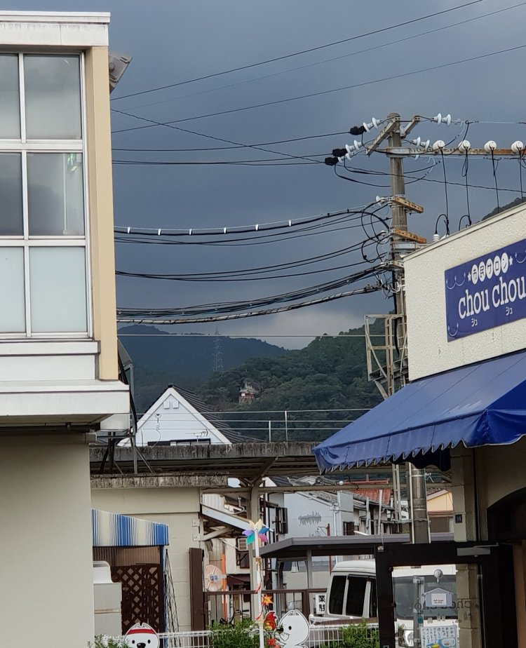 At Nachi Station, I passed time waiting for the bus by going for a quick walk on the beach. The clouds looked adorable, so nice and cute: just fluffy children’s drawings of clouds, nothing like the big, black angry ones that had been precipitating all night.