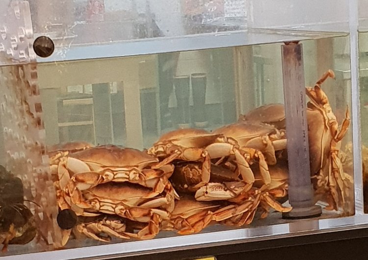 On the way, we stopped for a coffee and, as with most cafés and restaurants, there was a box underneath the seat in which to place our bags.