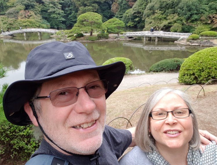 In Kyū-Furukawa Gardens, we walked on more large boulders, some gravel, up and down steps, much better for Liesel especially than all that flat concrete.