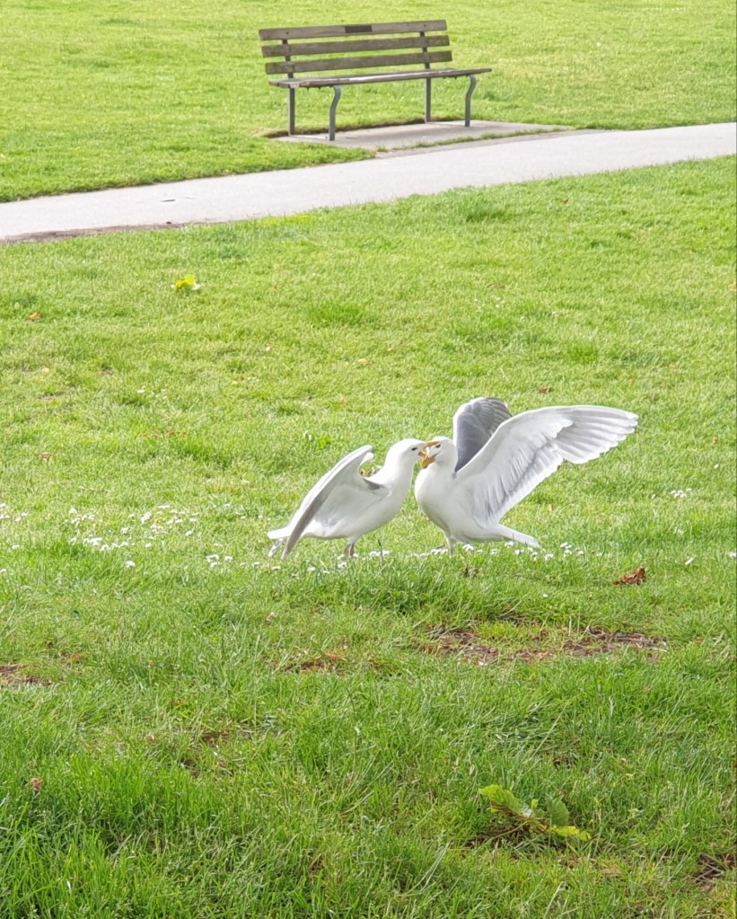 We couldn’t decide whether this was a big fight or foreplay. We left them to it. The clashing beaks sounded like a keen knitter at her most enthusiastic.