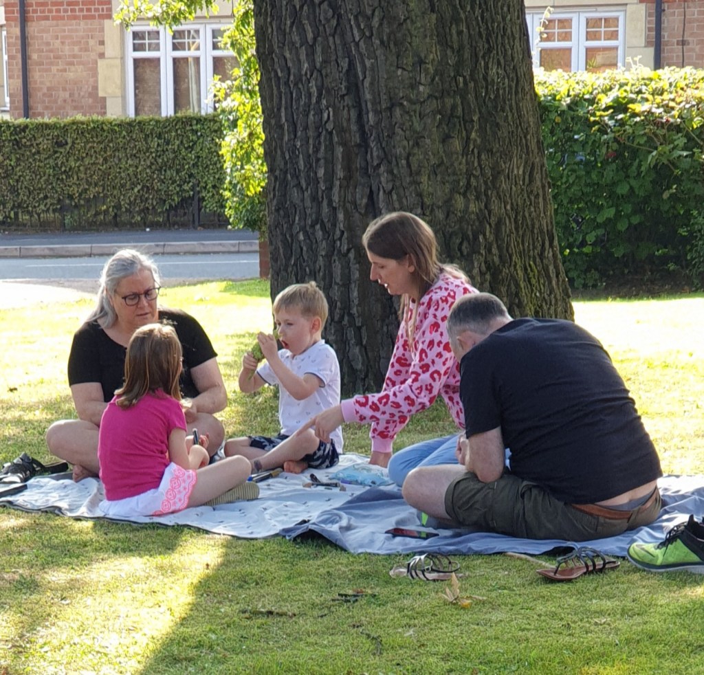It was such a nice day, we all went outside and sat in the shade of our old oak tree. The one we usually play hide’n’seek around. Or ‘tag’, even, but without actually touching because of Covid!
