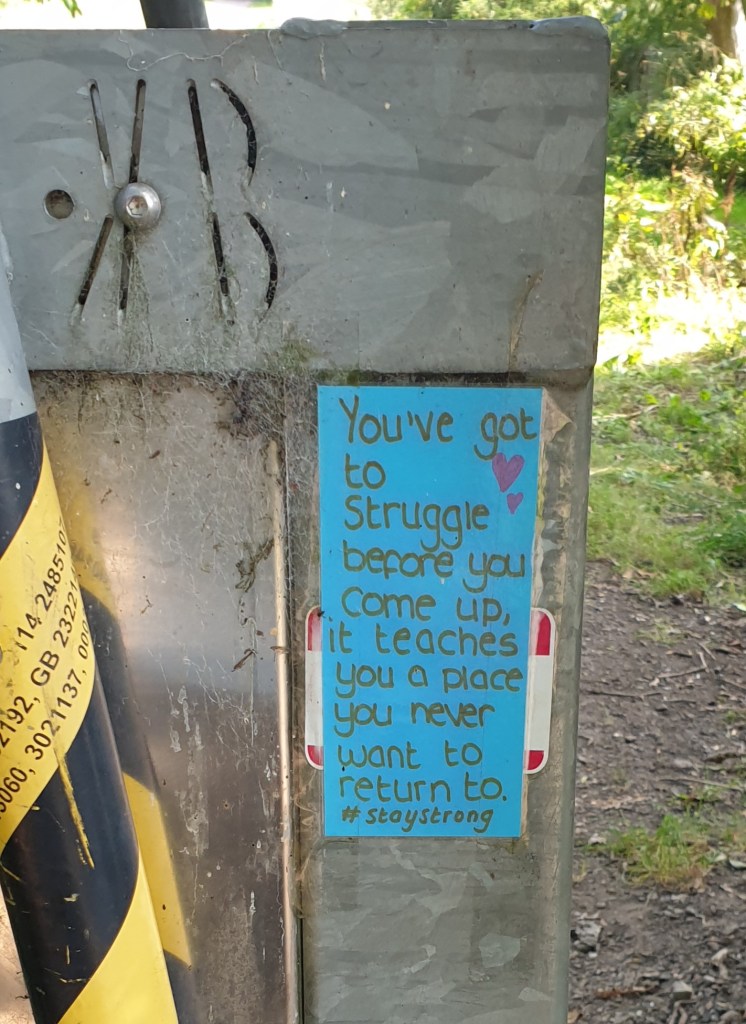 Sometimes on a local walk, we retrace our steps, and that can be rewarding. We did so this week to stay in the shade of the local woods just a little longer on what was a surprisingly hot Summer day. And there’s nothing wrong with this little piece of uplifting philosophy, which I think we’ve probably walked by several times, and missed, as it’s on the other side of the gate post.