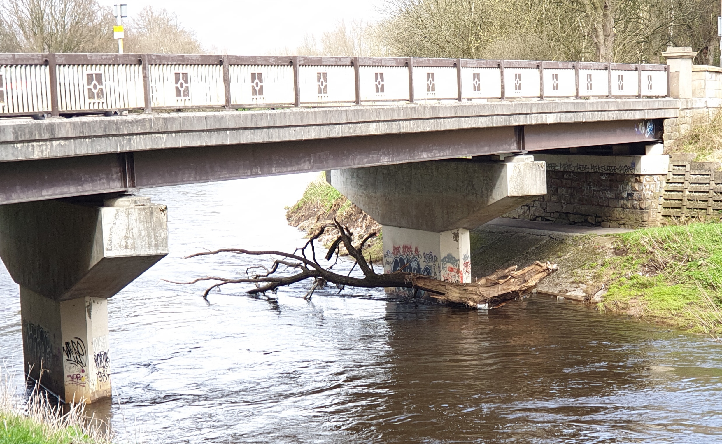 Another bit of a tree, a dead one, fell in and drifted towards the bridge.