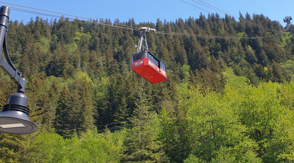 This tram took us 1800 feet up Mount Roberts from where we enjoyed a terrific view of the town and the inlet. It’s a very popular destination for cruise ships, of which we saw four docked today, and a few different ones later on.