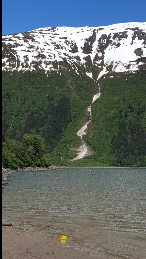 Driving back towards Juneau. ‘Why are those people letting their dog go to the other side of the road? And why are they taking pictures of it?’ ‘That’s not a dog, it’s a bear.’