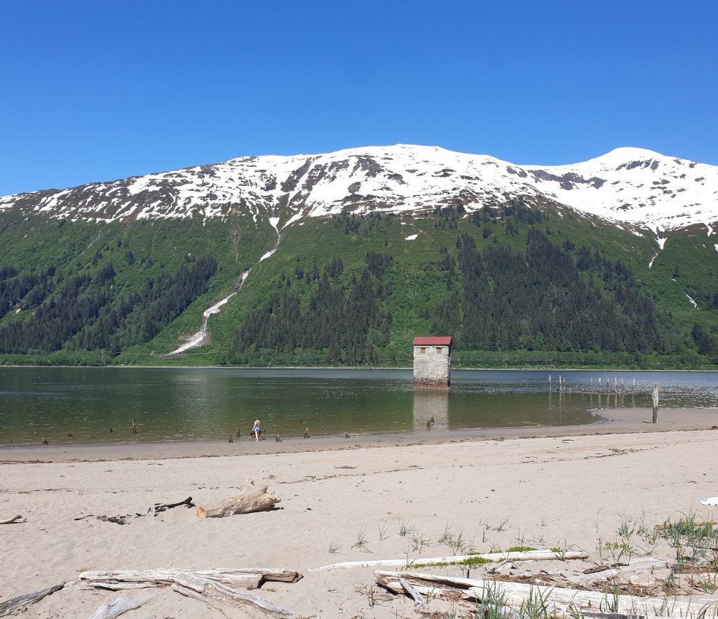 Monica literally drove us to the end of the road. This was south, along Thane Road, through a place called Thane, to the signs saying ‘This is the end of the road, turn around, go back, here be dragons’, or something. A reminder that Juneau can only be reached by sea and air.