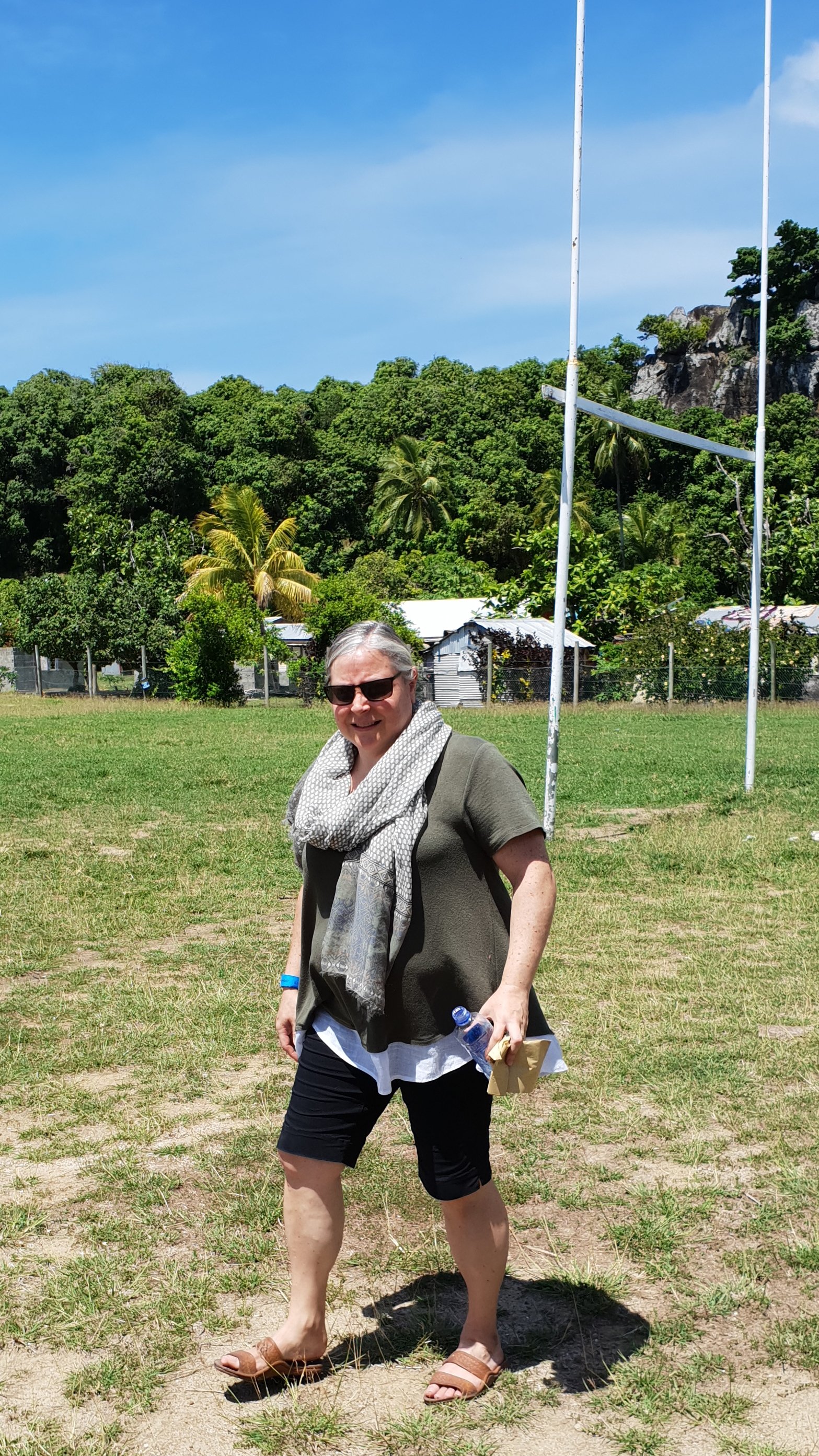 Modriki Island was the first port of call for us. We went snorkelling. Liesel had a much better time than I did. I don’t know whether I’ve just forgotten how to breathe using the equipment or mine had a leak, but I took on board far too much sea-water. Liesel saw shoals of little blue fish, scissor-tail sergeants, an eel, a parrot fish but she didn’t find Nemo nor Dory.
