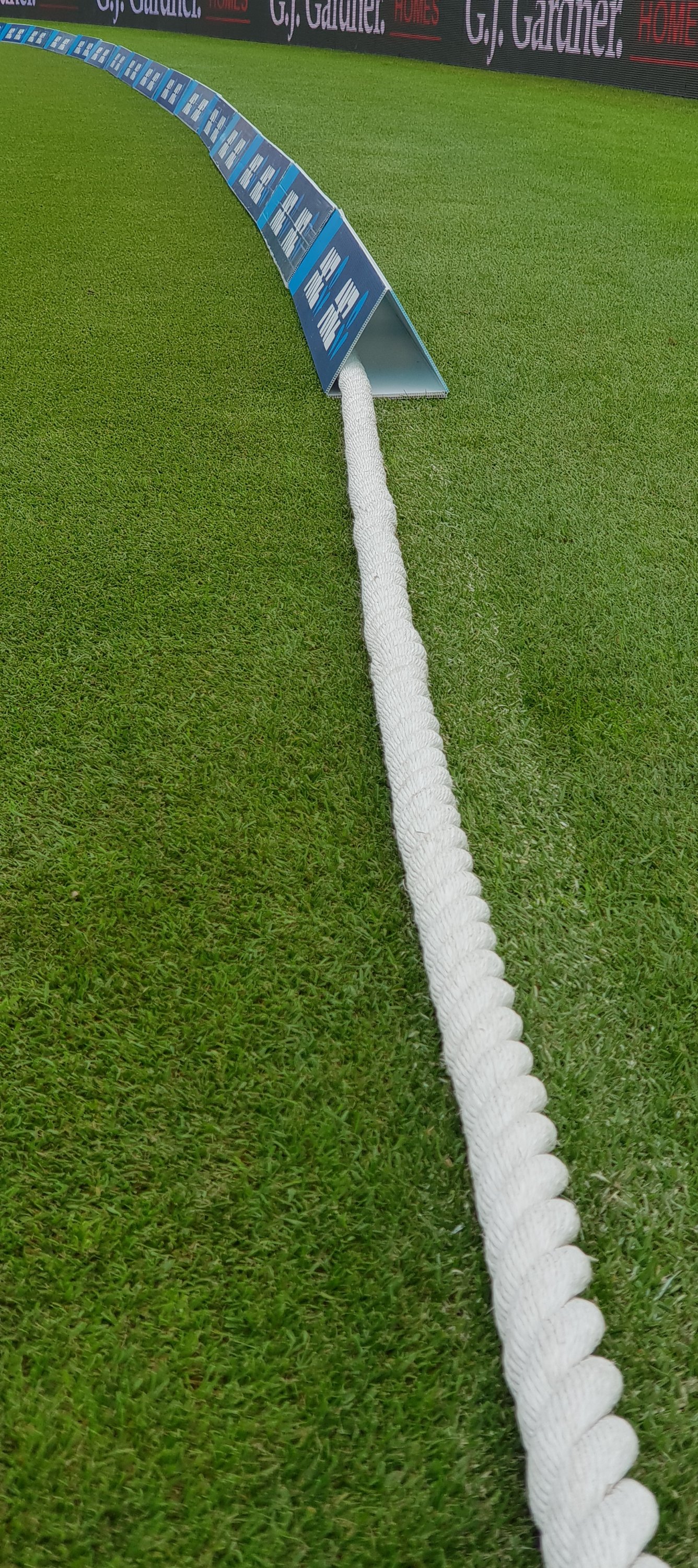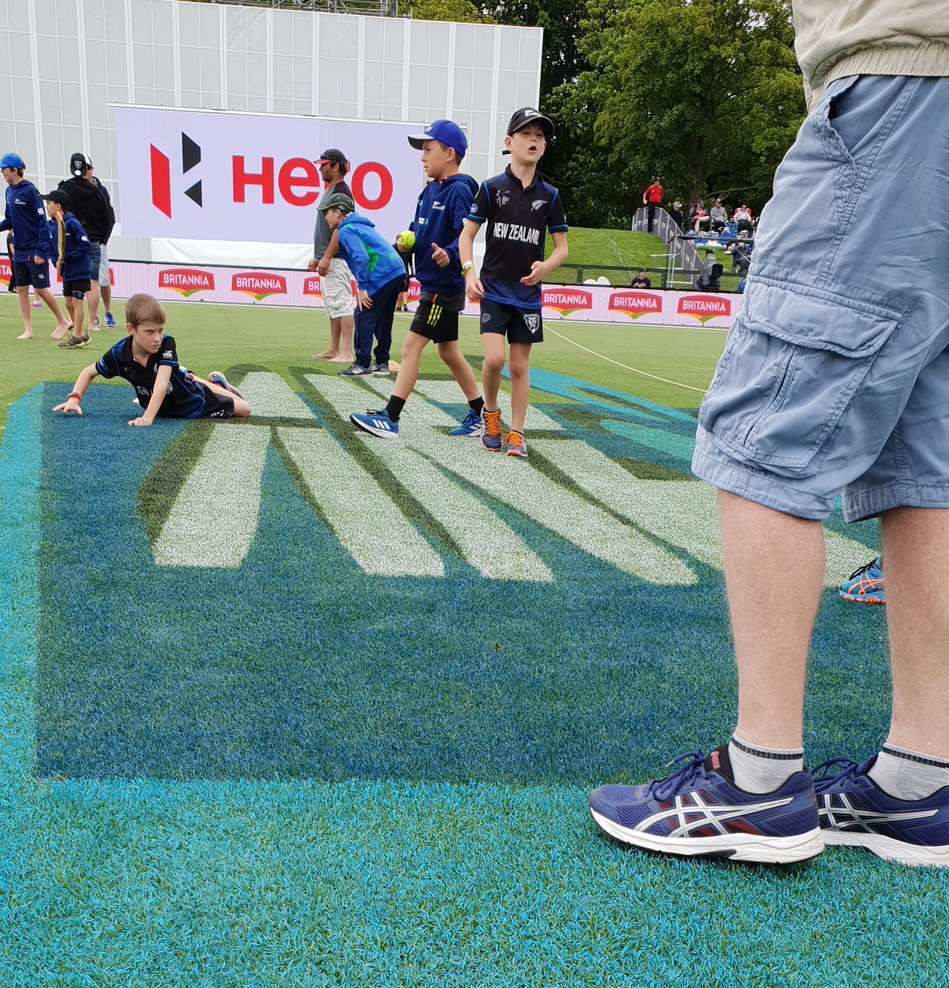 The announcer announced that we could buy tickets for subsequent days’ play on dub dub dub dot ticketek dot co dot nz. I thought, great, saying ‘dub’ is a lot faster than saying ‘double-you’, whereas in fact, you don’t have to say the ‘www.’ bit at all any more. But I did enjoy watching the painter and line toucher-upper at work.