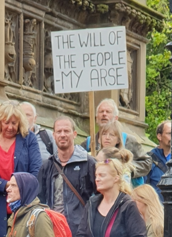 Because I dawdled, the “Stop the Coup” march to Albert Square caught me up so I joined in with a vocal contribution. This was just one of over sixty such protests all around the country. And beyond: some British Consulates in Europe also witnessed protests.