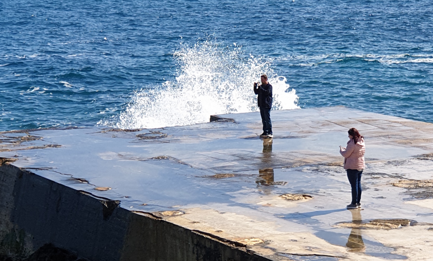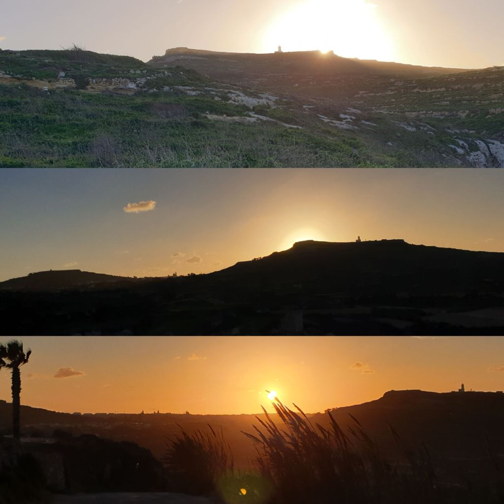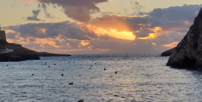 Obviously, it was much faster walking along the road and we soon found ourselves by the waterside in Xlendi. We found Moby Dick Restaurant, enjoyed lunch, and coffee, and watched the Sun going down over the sea. Again, I took far too many photos of the setting Sun, with and without clouds, trying to capture the waves as they broke just behind the wall protecting Moby Dick and the other shorefront premises from the Mediterranean.