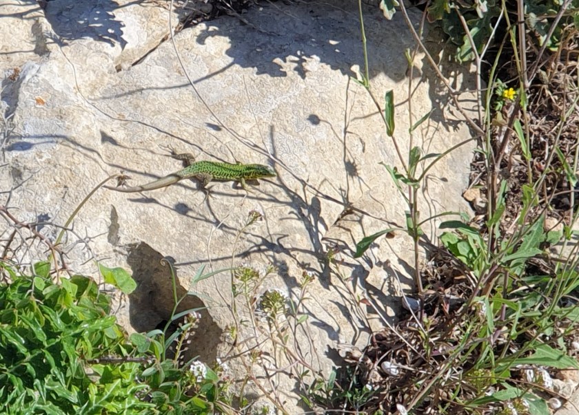 I saw the Usain Bolt of the lizard world dart across the path in front of us. Then Liesel saw one too, after which we saw a few, lone lizards, taking in the Sun on the rocks. Beautiful green lizards.