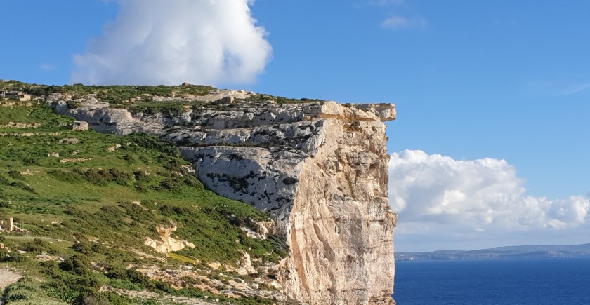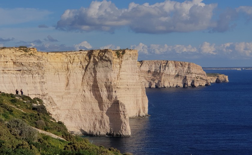 Sanap Cliffs offer an unparalleled view of the south coast of the island of Gozo. The highest point in the area is specifically known il-Pinnur, literally as the weathercock. This point is perched to the winds just as a weathercock. The island of Comino is to the left, and the north coast of Malta in front.’