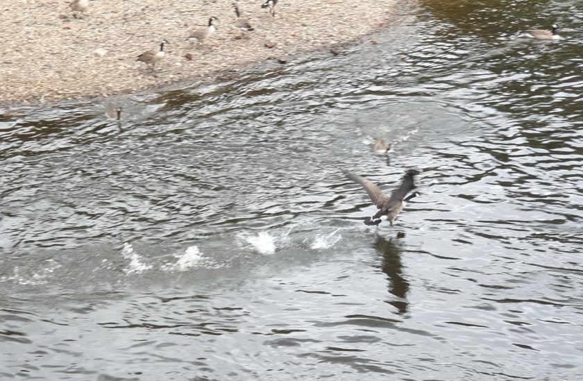 We’ve seen far fewer geese this week: I wonder if they’ve started to fly south for the Winter? Another missed photo opp was a pair of squirrels, both standing upright on their hind legs, each holding an acorn in their front paws. A very cute pair of bookends.