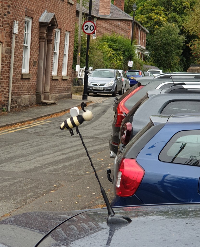 This thing looks like a wasp rather than a bee, but it has a silver back, like an elderly male gorilla. But I didn’t think wasps were bothered about pollinating. We await further information from our entomological correspondents.