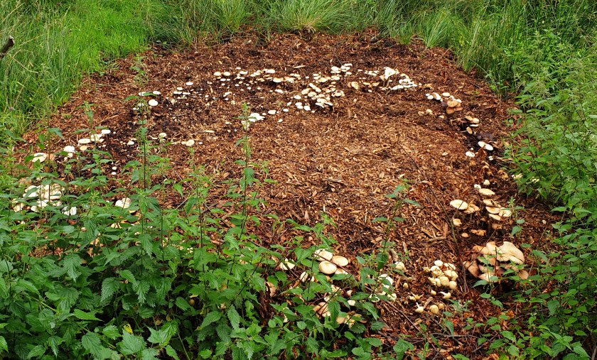 In the park, we admired the way the grass cutting operative had, literally, cut the corner.