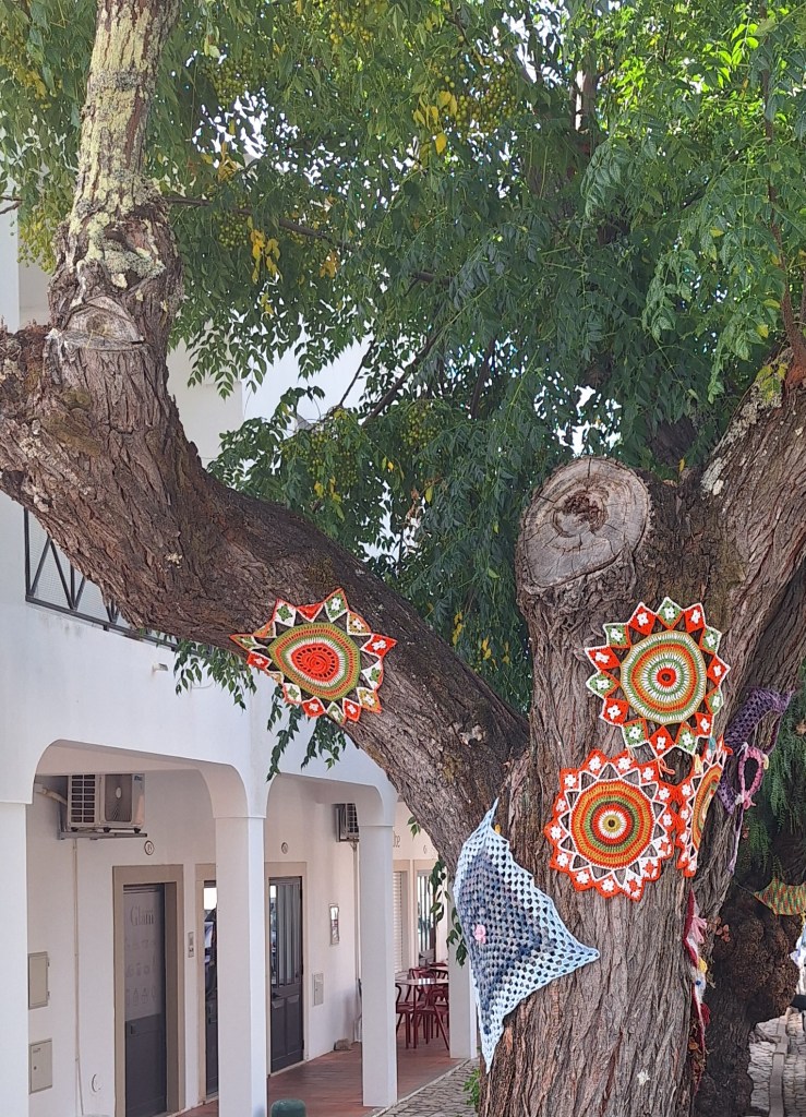 Liesel had some work to do, so we decided to return to base. A short walk and a short metro ride and another short walk later, here we are. When we disembarked at Marquês, we spent some time looking at the colourfully wrapped trees and other displays of colour. It’s all part of an art installation called Chromatic Emotions – Porto ’23.