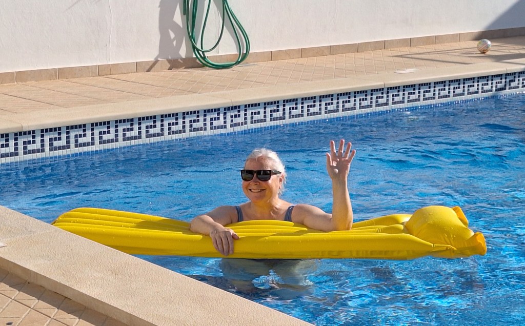 Catherine and Hans left us really early, bound for Germany on their way home to Alaska. After they’d departed, I went back to bed for another hour of slumber. Liesel, on the other hand, enjoyed playing in the pool.