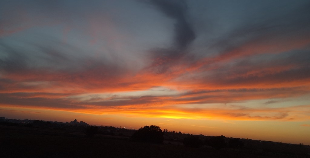 We carried on walking and when looking west, thought, wouldn’t it be nice to see the Sun set? Yes, but it’s a bit hazy in that direction. Well, all the better for a nice red sunset!