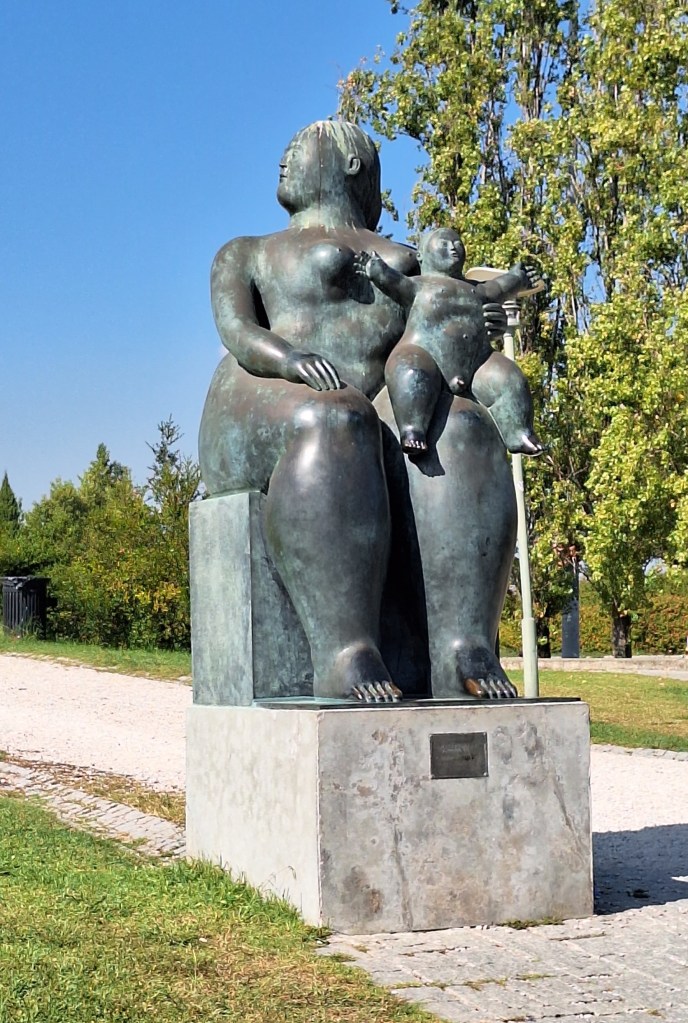 I think they’re London Plane trees, but it does depend who you believe. They’re certainly different to the plane trees in actual London. They may have been cut back and regrown, or they may be affected by fungus, there are many stories. Also in this park, you can see a set of sculptures featuring jolly gentlemen being daft. So of course, I had to join them.