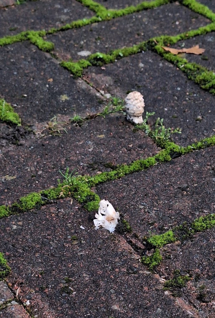 Given the weather, it wasn’t surprising to see mushrooms growing on our patch of grass slash moss. What was surprising was seeing mushrooms growing in one of our car park spaces.