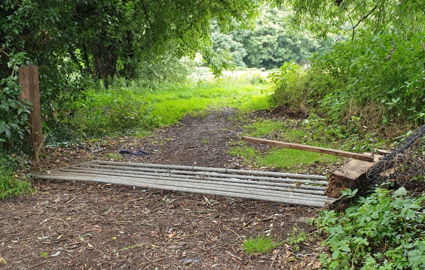 I wonder if the perpetrator of the fly-tipping was also responsible for this. Someone was desperate to get onto the golf course, by the looks of it.