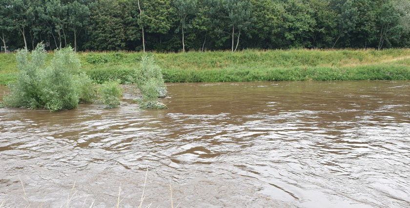 Remember the island? After a whole night’s torrential rain, the river was flowing as fast as we’ve ever seen it, and it had risen significantly.