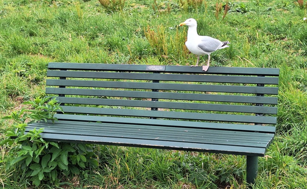 Herring gull on a bench