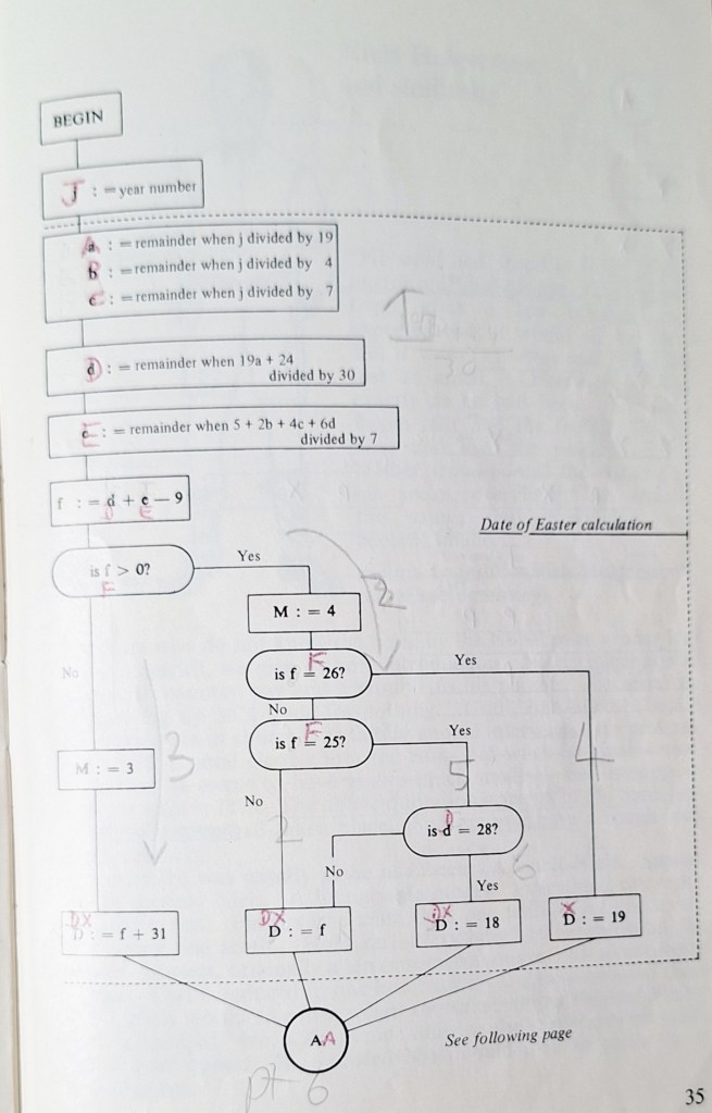 The flowchart appeared in a monthly maths magazine called Pythagoras, which I still have, for now, but I am putting a few items up for sale on eBay.